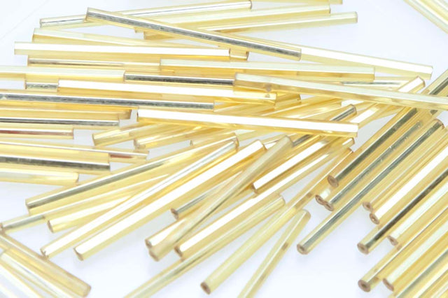 Vintage Venetian Glass Bugle Bead Silver Lined Champagne Gold 30mm Average - 250 Grams per Package