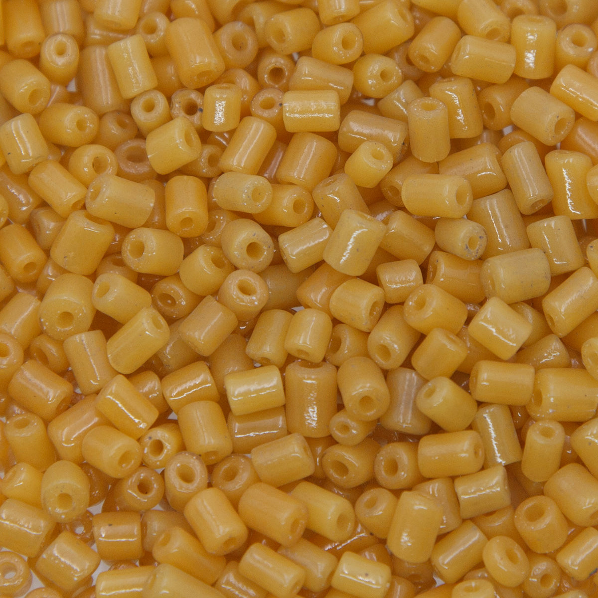 Detailed Description: Vintage Venetian bugle lstr dark greasy yellow #2. These vintage Venetian seed beads were crafted between the late 1800s and early 1920s, a testament to the extraordinary skill of Murano glass artisans working under Società Veneziana Conterie—a consortium of sixteen independent beadmakers united in 1898. Each bead carries over a century of history, made from glass canes that often predate the consortium itself. Because every batch was handmade, subtle differences in shape, size, and color are to be expected and celebrated. Most strands have long since given way to time, so a few broken bits of string may be found among these authentic treasures.