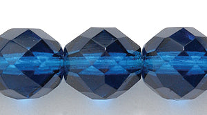10FC268R: Czech Faceted Round Transparent Capri Blue 10mm - - 25 Piece Pack