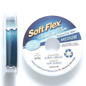 Soft Flex is crafted with state of the art micro wire technology. Soft Flex Beading wire is lead free and constructed from 21 or 49 micro woven stainless steel cables, braided together and coated in nylon. This innovative wire technology gives you a superior, flexible and knottable super strong beading material.