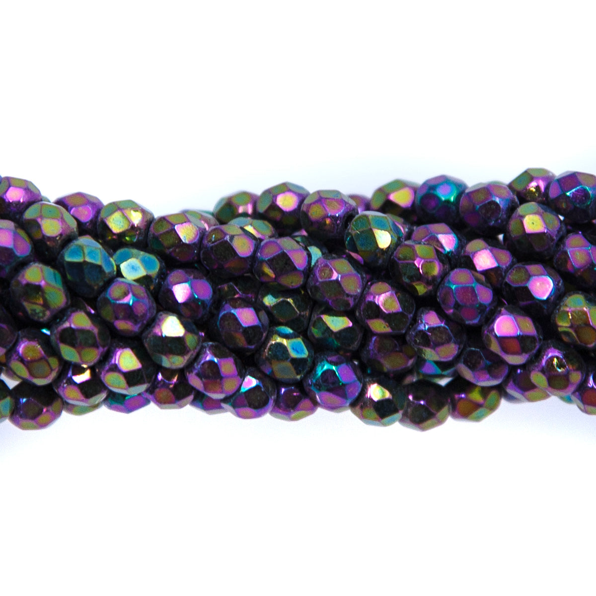 Czech Faceted Round Purple Iris 4mm - 600 Pieces