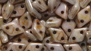 Yet another fabulous addition to our Czech bead family! CzechMates Two Hole Diamond beads are flat a hole at each tip of the flat face. When strung, the angles of the 2mm wide edges will be facing outward.