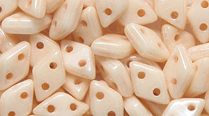Yet another fabulous addition to our Czech bead family! CzechMates Two Hole Diamond beads are flat a hole at each tip of the flat face. When strung, the angles of the 2mm wide edges will be facing outward.