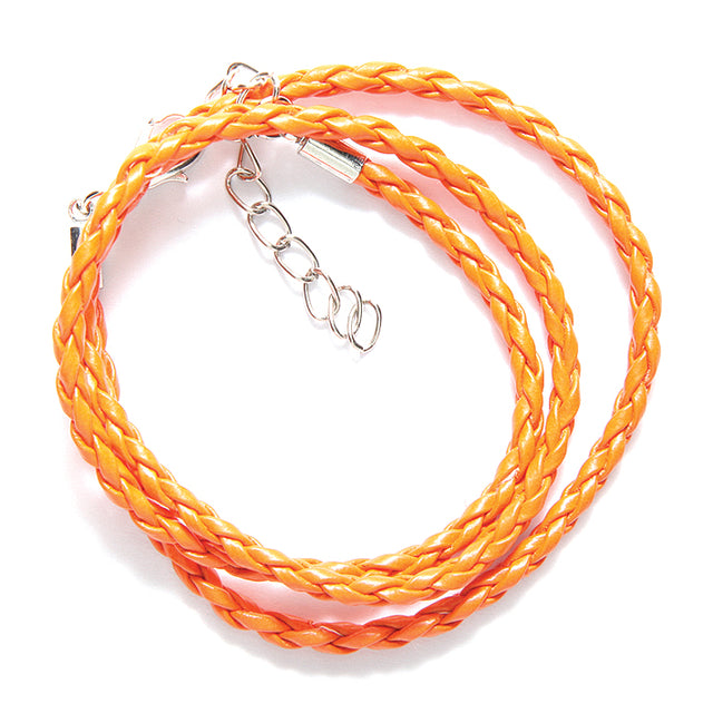 Necklace Leather Braid Orange 17-19 Inch - 1 Piece