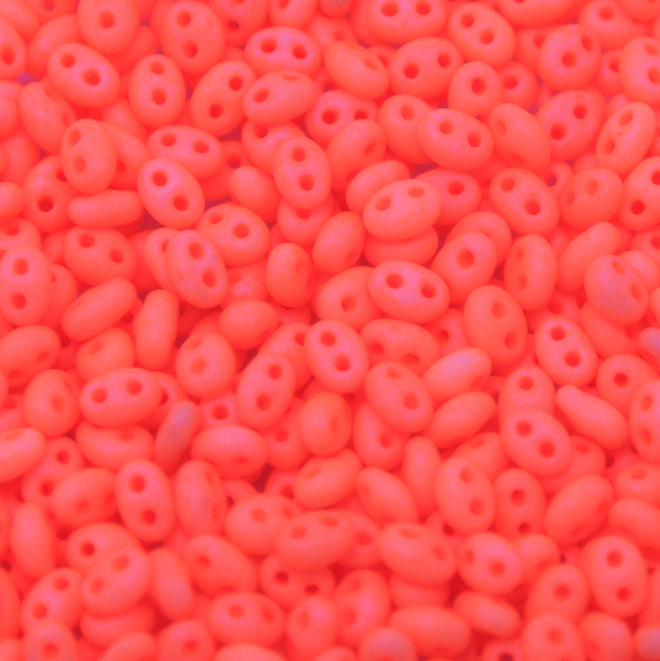 Czech Twin Two Hole Seed Bead Neon Orange 2.5x5mm - 250 Grams