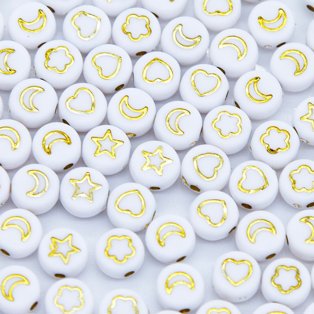 Acrylic Disc Symbols White w/Gold 4x7mm 100Pcs