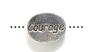 Bead Oval With Courage Bright Silver 9x10mm 1 Piece
