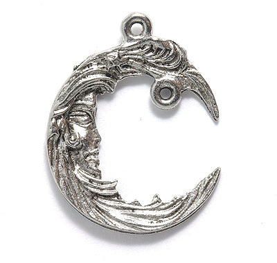 Moon Woman/face Crescent With Hoop Antiqued Pewter 28mm